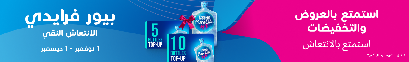 نستله بيور لايف 6 لتر(2 زجاجة بالشرنك)تأتي زجاجات مياه نستله بيور لايف ٦ لتر في زجاجة بلاستيكية ذات حجم مناسب لسهولة شرب المياه في البيت أو في السفر ، ولتحضير المشروبات أو الطبخ. هناك أيضًا أحجام إضافية للزجاجات مصممة لتناسب كل استخدام ، سواء كنت تبحث عن الترطيب ، تناول وجبة ، أثناء ممارسة الرياضة أو الشغل أو الاسترخاء في البيت تخضع مياه نستله بيور لايف المعبأة ل١٠ خطوات جودة كجزء من التزامنا بتوفير مياه نقية ونظيفة. مزودة بمزيج خفيف من المعادن لطعم منعش وطبيعي هي المياه المعبأة رقم ١ في مصر. روح خطوة أبعد٦٠٫٠٠EGP